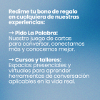 Cursos y talleres → Espacios presenciales y virtuales para aprender herramientas de conversación aplicables en la vida real.
